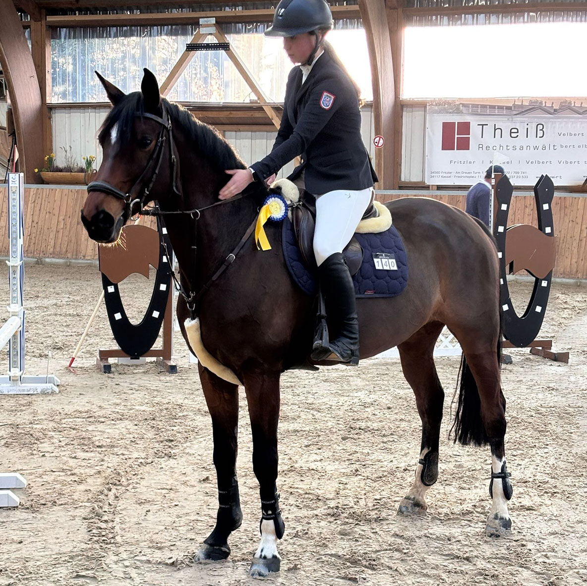 Lehrpferd mit Top-Einstellung, M-platziert.